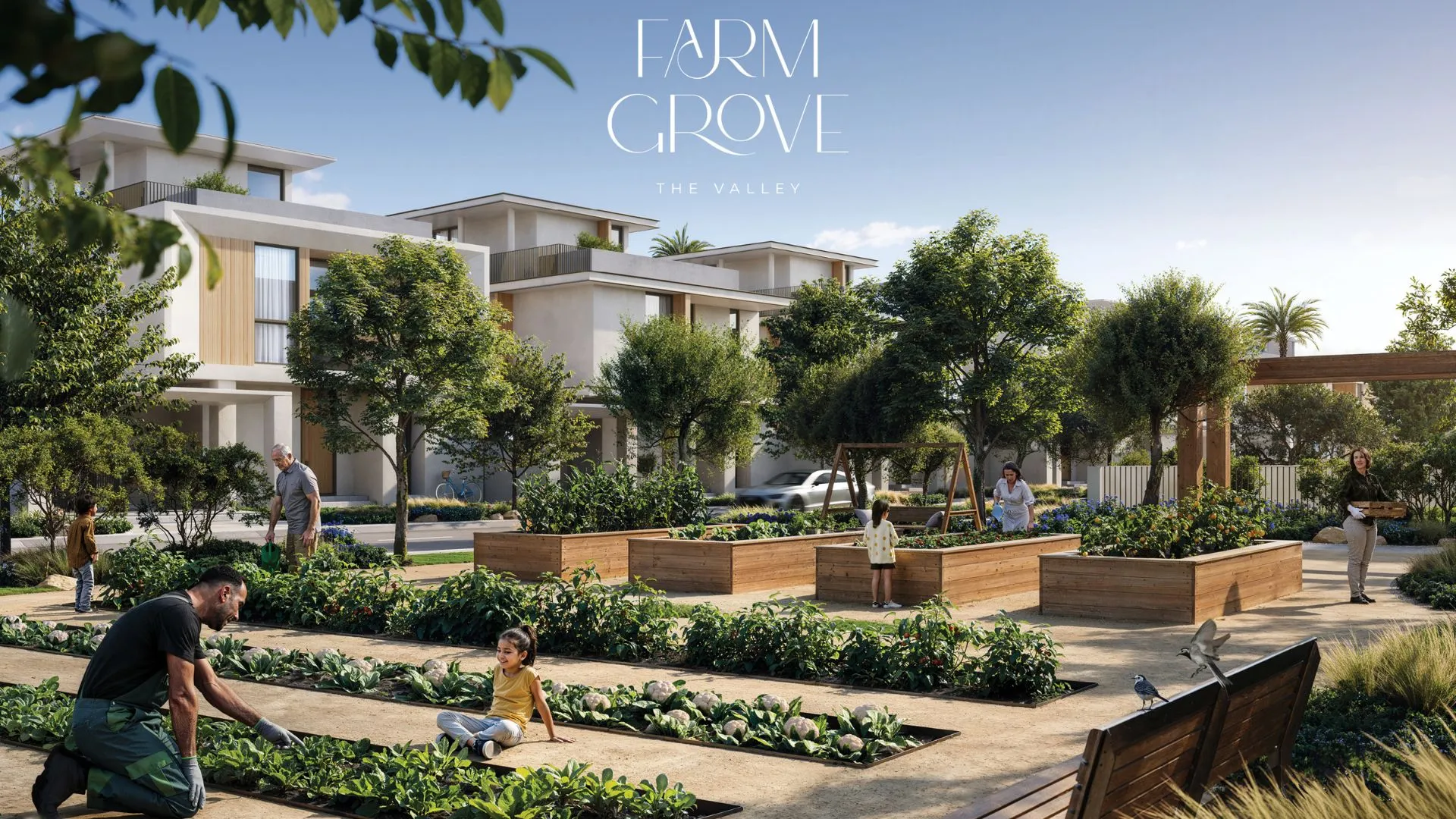 Farm Grove at The Valley by Emaar Properties is a serene villa community offering a nature-inspired lifestyle within Dubai’s first farm-to-table neighborhood. Located along Dubai–Al Ain Road, this exclusive development features elegant 4 and 5-bedroom villas ranging from 3,700 to 7,500 sq ft. Surrounded by lush Ghaf trees and green landscapes, the community promotes wellness and sustainability with amenities like organic farming pods, community gardens, picnic areas, open-air fitness zones, cycling tracks, and swimming pools. Designed with earthy tones and open layouts, the villas offer seamless indoor-outdoor living, complete with floor-to-ceiling windows and spacious terraces. Residents enjoy access to family-friendly amenities including children’s play areas, retail outlets, and a central community center. The project’s strategic location provides quick connectivity to Downtown Dubai, Dubai Outlet Mall, and DXB Airport. With prices starting from AED 4.44 million and a flexible 80/20 payment plan—10% on booking, 70% during construction, and 20% on handover—Farm Grove presents an ideal investment opportunity for buyers seeking luxury, tranquility, and connection with nature. Handover is scheduled for Q4 2028, making it a perfect long-term investment for families and individuals looking to grow in a peaceful, self-sustained community within Dubai.